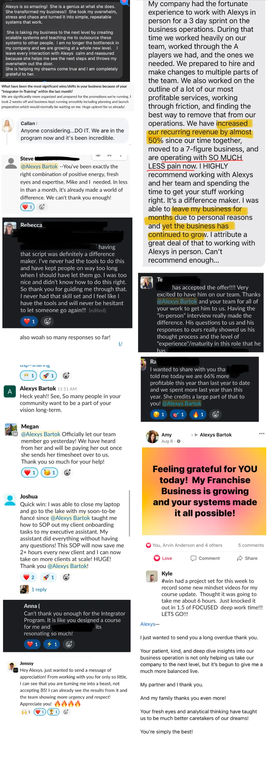 We’ll help you create streamlined systems, empower your team to deliver seamlessly, and provide the tools to build a thriving, profitable business that doesn’t consume your every waking hour. Imagine the freedom to focus on growth while regaining balance in your life.